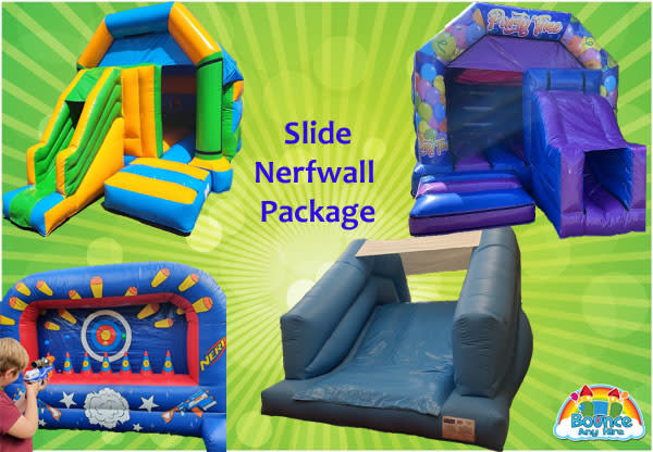 Please choose any Combi bouncy castle or up and over slide to go along with your Nerf wall. We have a short selection of castles to choose from.